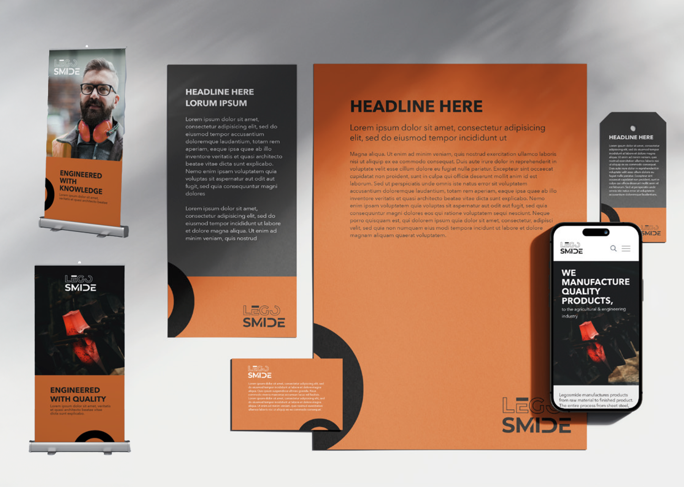 A comprehensive branding concept for Legosmide, covering every aspect of the company’s visual identity.